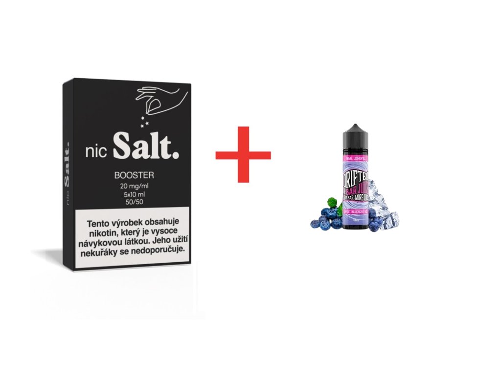 Kompletní Shake & Vape balíček pro začátečníky – příchuť Drifter Bar Sweet Blueberry Ice + booster 50/50. Výhodné balení pro snadné míchání vlastního e-liquidu.