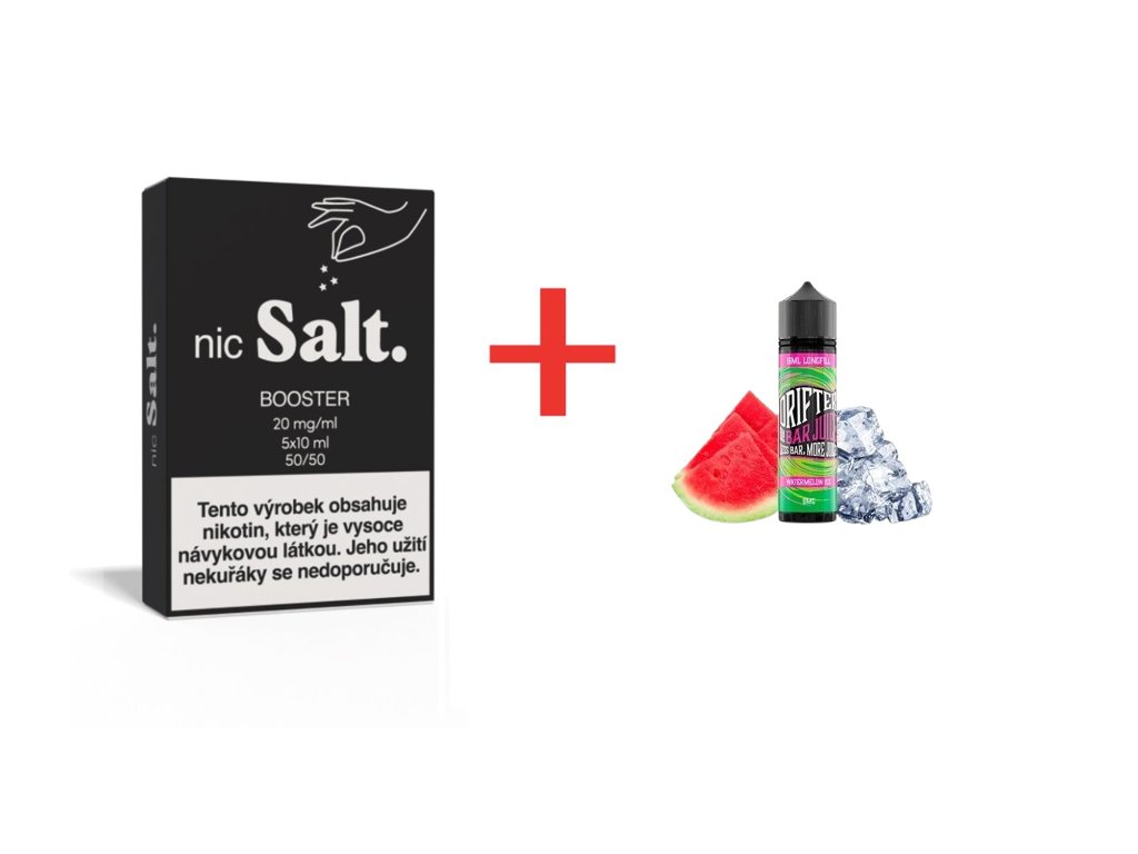 Kompletní Shake & Vape balíček pro začátečníky – příchuť Drifter Bar Watermelon Ice + booster 50/50. Výhodné balení pro snadné míchání vlastního e-liquidu.
